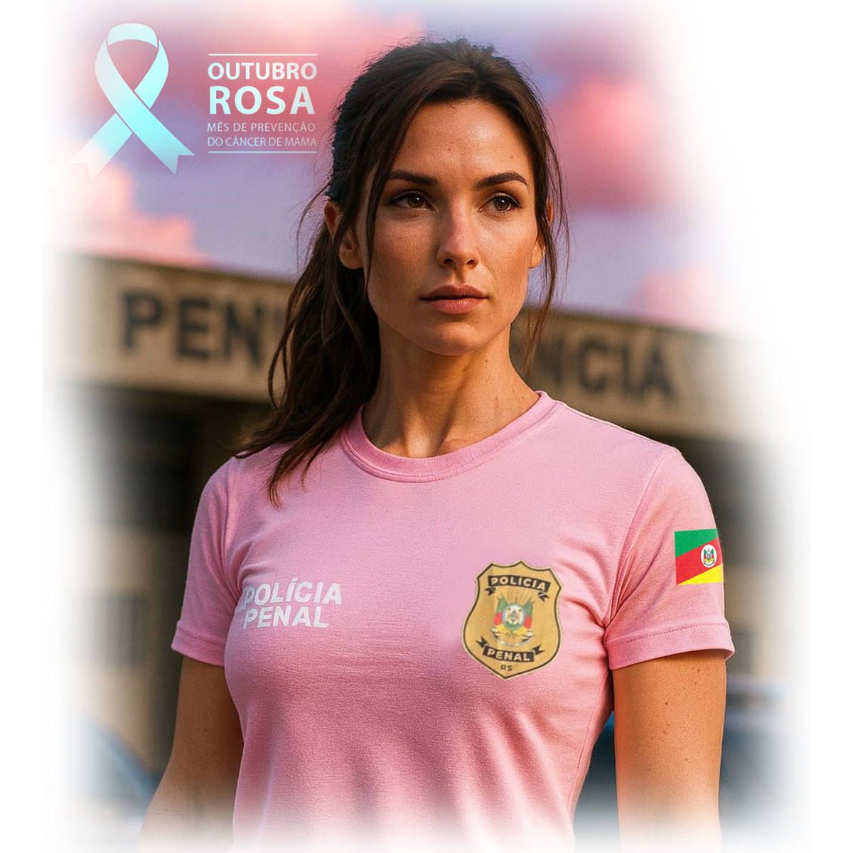 Em apoio ao Outubro Rosa, mês dedicado à conscientização e prevenção do câncer de mama, desenvolvemos esta camiseta exclusiva para que as policiais penais do Rio Grande do Sul possam participar da campanha também durante o serviço.